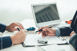 The car dealer and the customer enter into a contract with an application form that receives financial approval from the bank for the loan. Close-up pictures