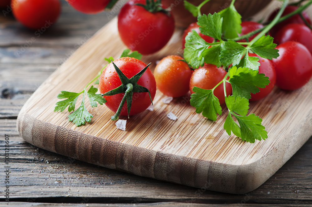 Fresh red tomato with green parsley