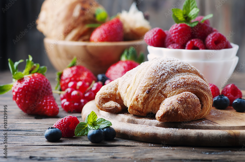 Fresh croissant with mix of berry