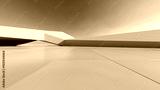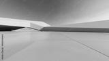 3d render of abstract modern concrete white architecture with empty cement floor, minimal exterior, car presentation background