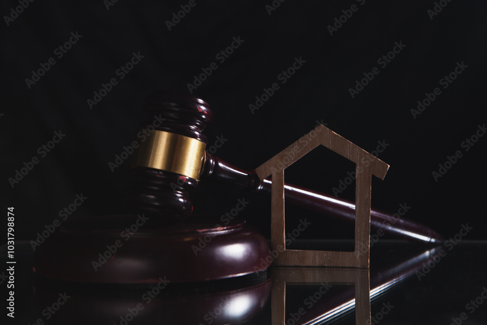 gavel and small house on table