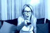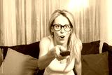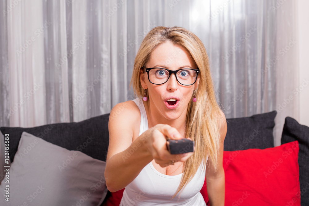 Woman with TV remote in her hands