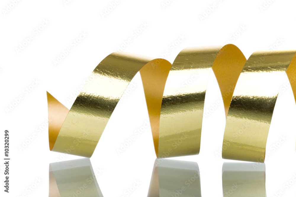 a detail of a golden ribbon isolated on white (selective focus)