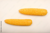 Three peeled ears of corn on a white background. A printed cob. Ripe delicious corn.