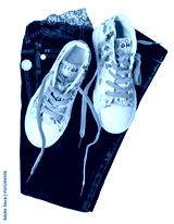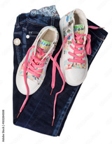 Jeans sneakers shoes isolated.Child's denim clothes concept.
