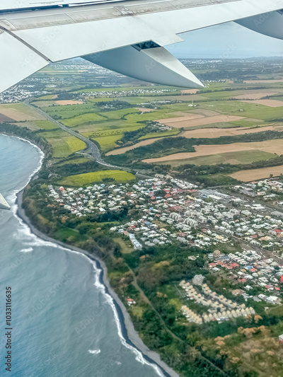 Vue aérienne sur Saint-Marie et la ravine des Chèvres, île de la Réunion