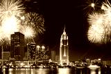 Celebration. Skyline with fireworks light up sky over business district in Ho Chi Minh City ( Saigon ), Vietnam. Beautiful night view cityscape, urban landscape. Holidays, celebrating New Year.