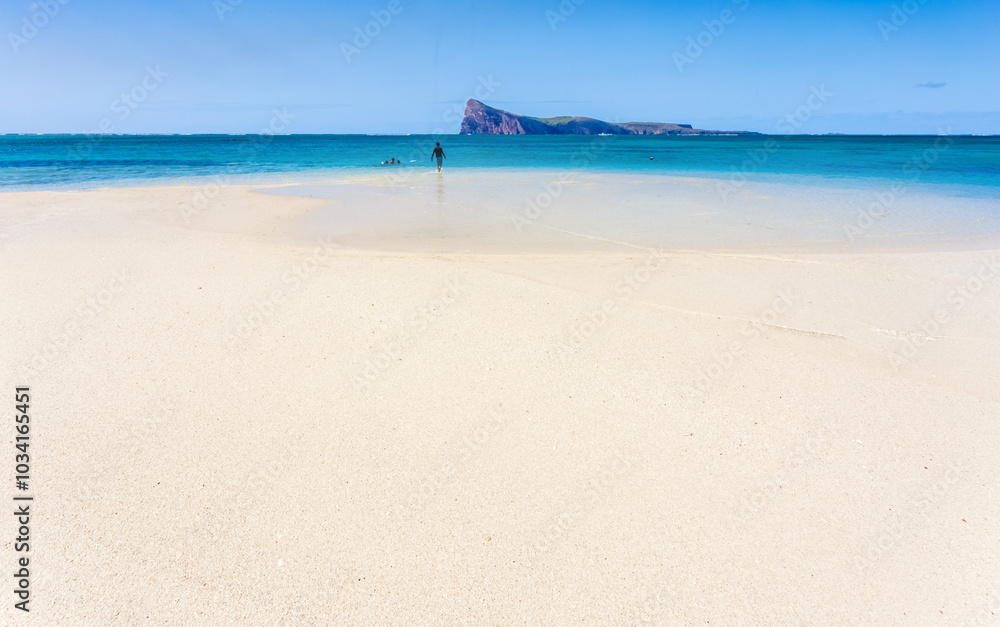 Plage paradisiaque avec vue sur l’île du Coin de Mire, île de la Réunion