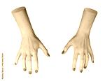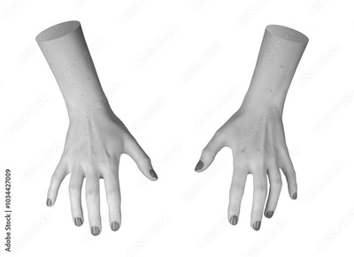 Hand gesture with fingers outstretched, symbolizing virtual interaction and reaching into invisible space. Closeup of female hands in an abstract pose, capturing movement and