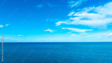 Nature of the beach and sea Summer with sunshine, sandy beaches, clear blue waters sparkling against the blue sky. On an island with good ecology and environment Background for summer vacation concept