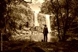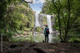 Woman enjoying the view of Te Wairere Waterfall. Bay of Islands.