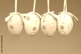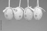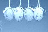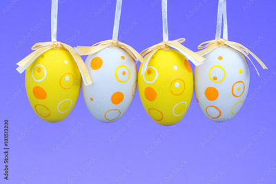 Easter eggs on rope on colorful wooden background. Easter backgr