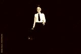 Full length photo of lovely pensioner lady commercial pilot suitcase walk dressed aviator uniform isolated on dark blue color background