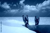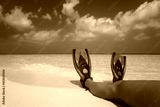 Woman relaxing on summer beach vacation holidays lying in sand.