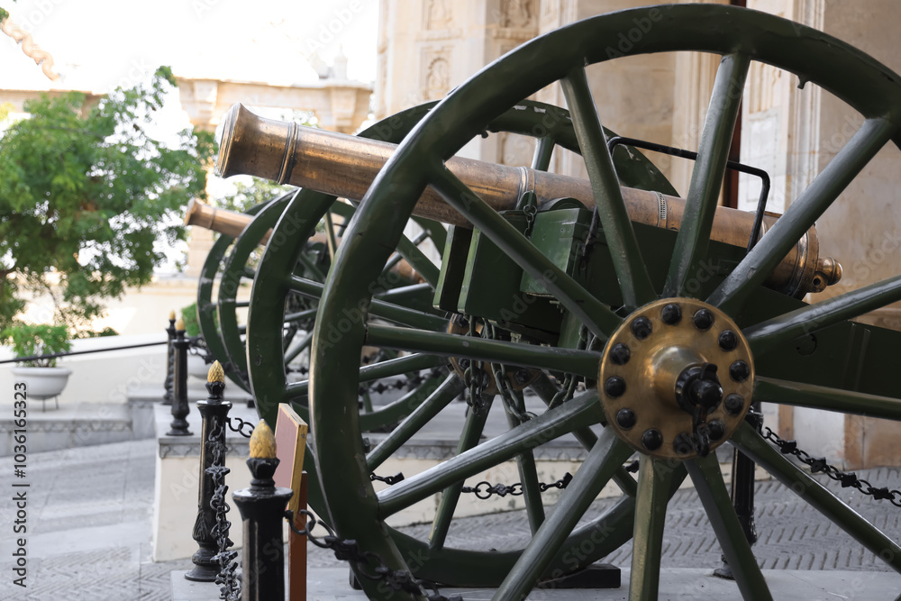 Vintage cannons in City Palace complex gate, Udaipur, Rajasthan, India