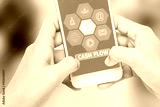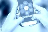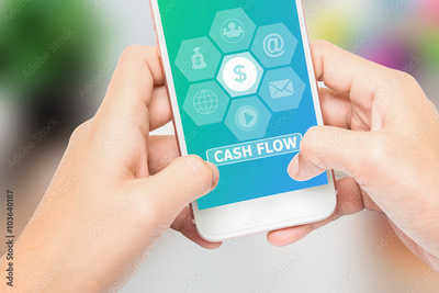 Hand holding the phone label CASH FLOW message, Can be used in advertising