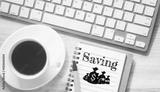 Concept Saving message on book. A pencil and a glass coffee table.Vintage tone.
