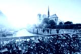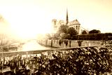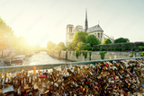 View of Notre Dame cathedral in Paris with famous locks of love
