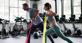 Elastic Stretch Band Training Exercise. Pilates Workout