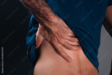 man holds back back pain medical concept