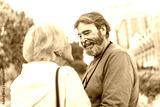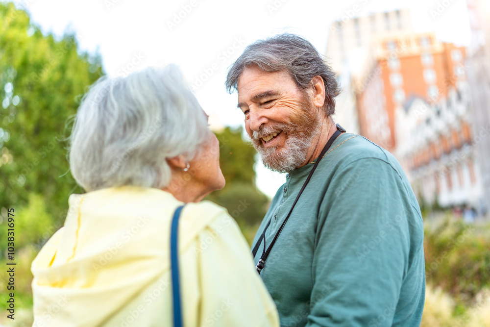 Senior couple looking at each other with tender look outdoors
