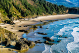 Aerial view of the scenic Pacific Northwest coast, with ocean and miles of sandy beach