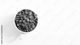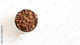 A white cup atop a bed of coffee beans, capturing the essence of fresh coffee and convenience.