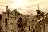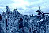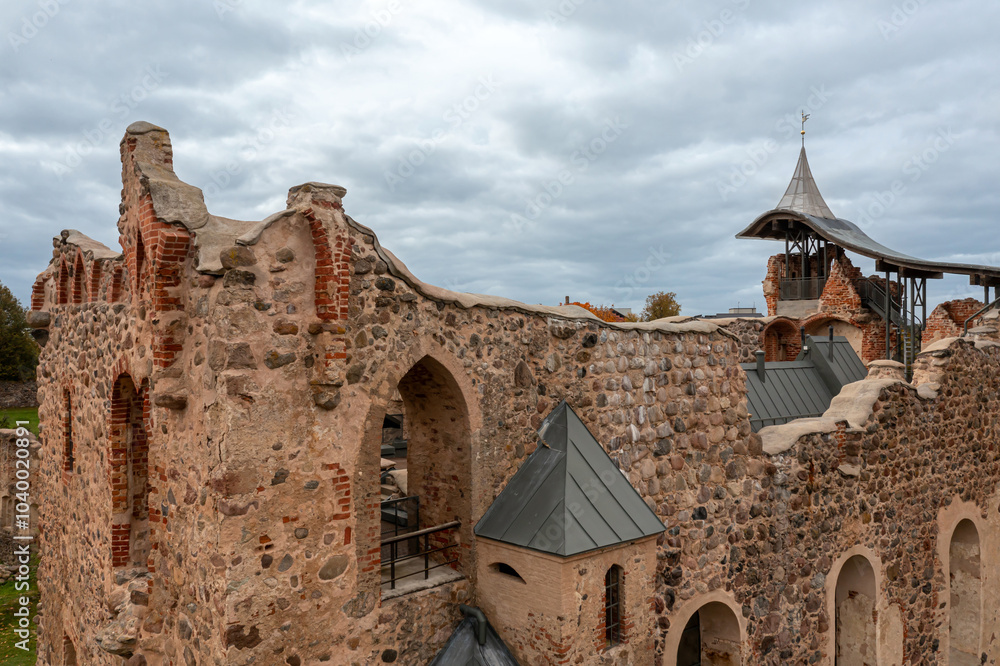 Exploring the historic ruins of a medieval fortress under a cloudy sky