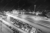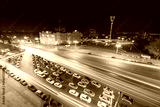 The top view on the road and the night city. Fires of roads on long exposure. The night road on long exposure. Traffic at night.