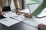 Alternative energy environment businesspeople discuss and brainstorming about renewable energy data