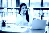 Beautiful Asian female accountant working with smartphone and laptop at her desk analyzing business reports and documents. Sending messages
