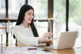 Asian businesswoman working with laptop in office
