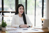Asian businesswoman working with laptop in office