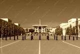 The majestic Sultans Palace in Muscat showcases stunning architecture under a clear blue sky during a sunny day