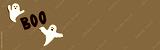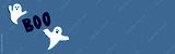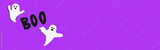 Halloween set decorations with ghost and word BOO on violet very peri background. Holiday party, minimal greeting card, spooky concept. flat lay, copy space, top view, place for text, banner