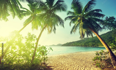 sunset on the beach Takamaka, Mahe island, Seychelles