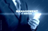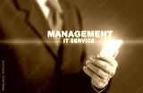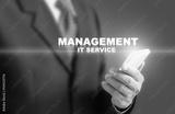Businessman pressing hand IT service management word on virtual screen. Can bring to the medium of your ad.