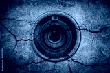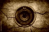 The camera lens is on cracked cement background