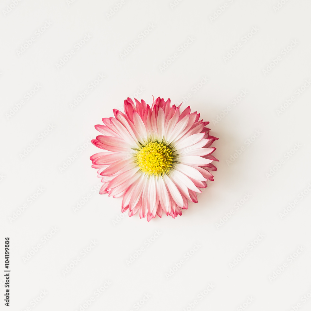 Daisy flower close up. Flat lay.