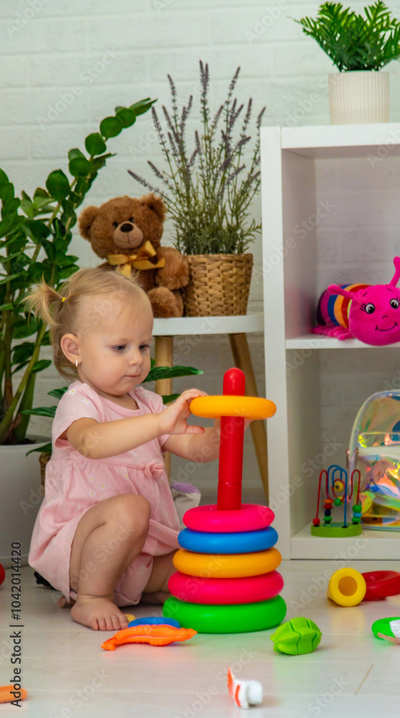 little girl playing with toys. Selective focus