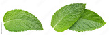 Two fresh mint leaves isolated on white background. Studio macro