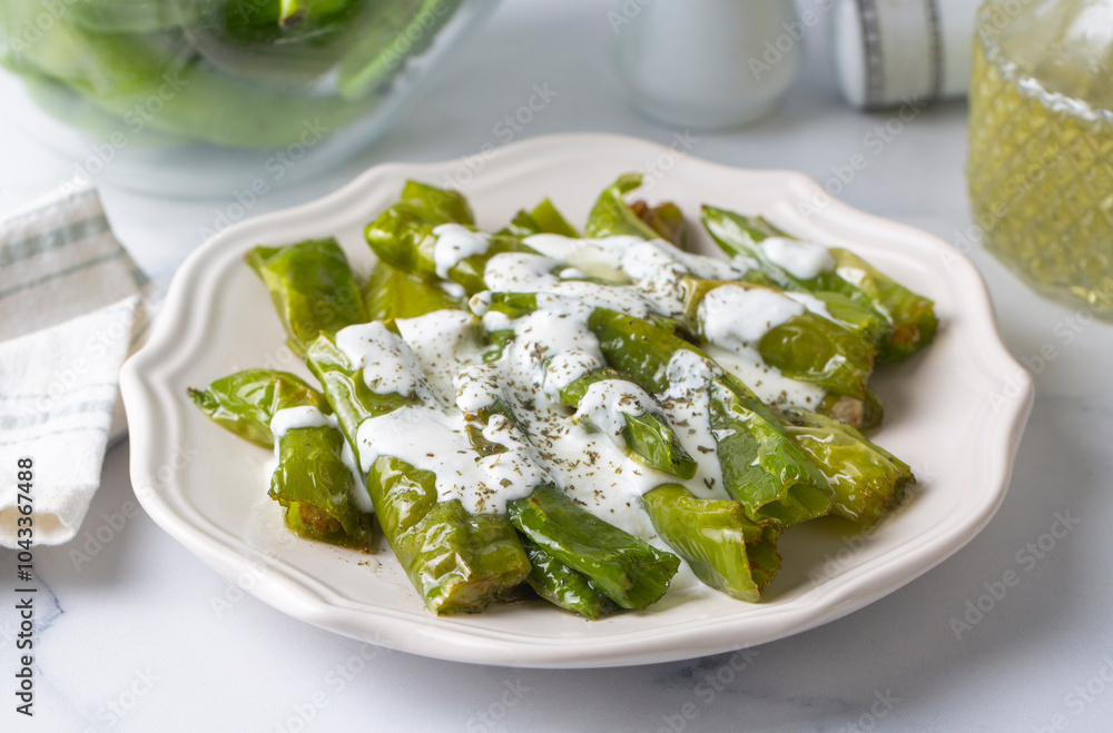 From Turkish cuisine, served with yogurt sauce on fried green peppers. Turkish name; Yogurt soslu biber kizartmasi