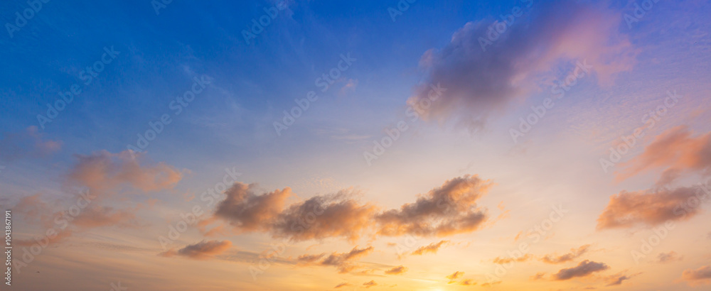 Morning clouds and sky,Panorama sunset sky and cloud background,Orange sky and clouds background,Background of colorful sky concept, amazing sunset with twilight sky and clouds