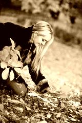 Beautiful woman in yellow autumn park. Shallow DOF.