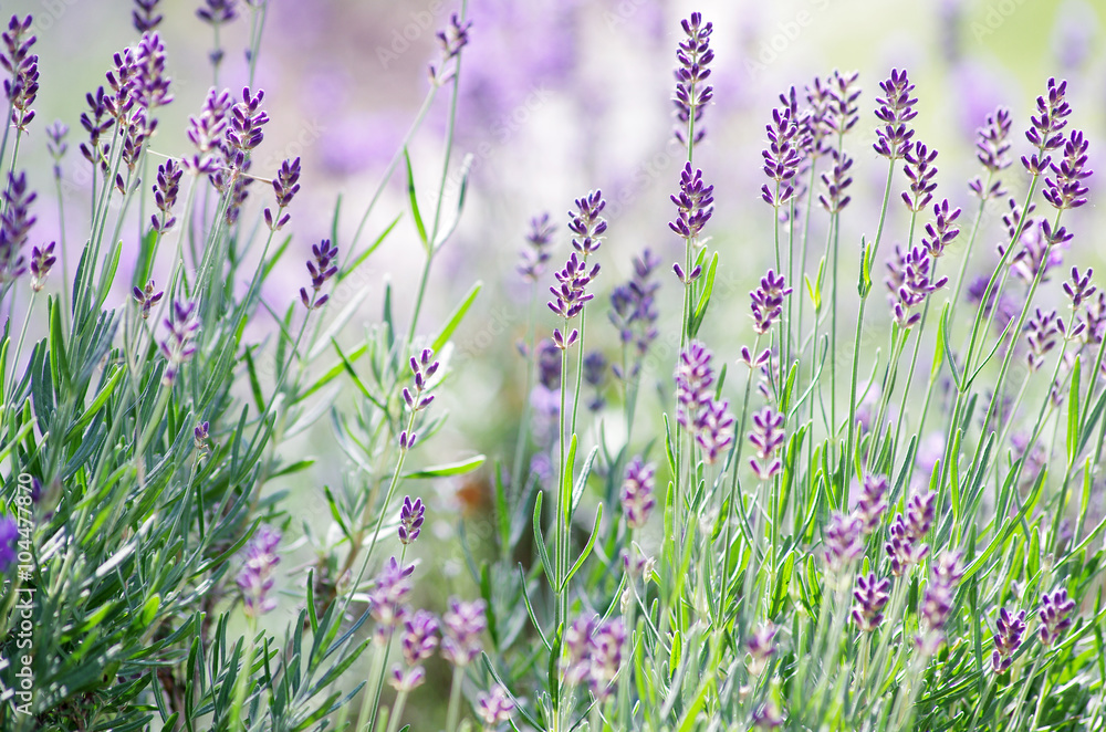 Lavandula angustifolia im Sommergarten helles freundliches Bild vom Lavendel im Garten