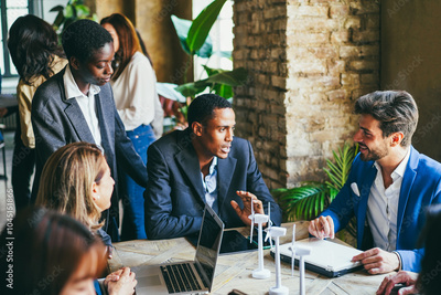 Multiracial business people working on sustainable innovation project - Green renewable energy concept - Focus on african girl face