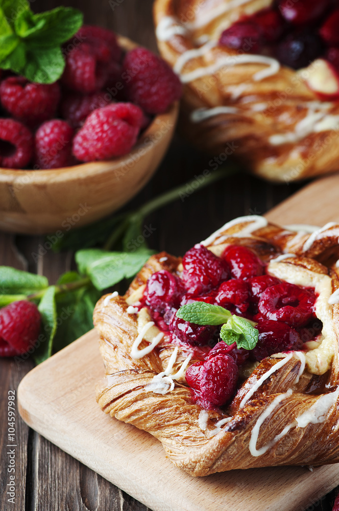 Sweet homemade cake with fresh berry and mint
