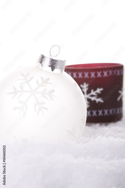 christmas white background, with snow and christmas balls