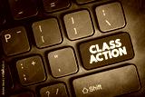 Class action - legal proceeding in which one or several plaintiffs bring a lawsuit on behalf of a larger group, text concept button on keyboard