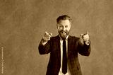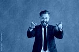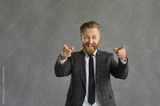 Glad you joined. Want you. Happy positive cheerful entrepreneur, company employer, business recruiter, corporate head hunter on grey background points at you choosing you as new employee